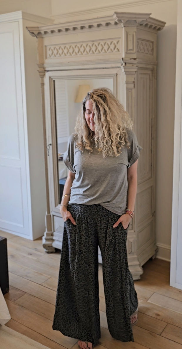 Check out the cool blend of style and personality with our Leopard Print Palazzo Pants from Portobello Road Princess. These unique pants are made for those who love lasting fashion, perfectly mixing a fun pattern with a laid-back luxe look and handy pockets. Embodying a boho vibe, these palazzo pants are comfy and chic, ideal for any event. Add a bit of fierce style to your wardrobe and stand out in a way that's always in vogue. Find your unique vibe with a piece of Fierce Boho.